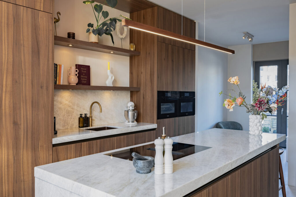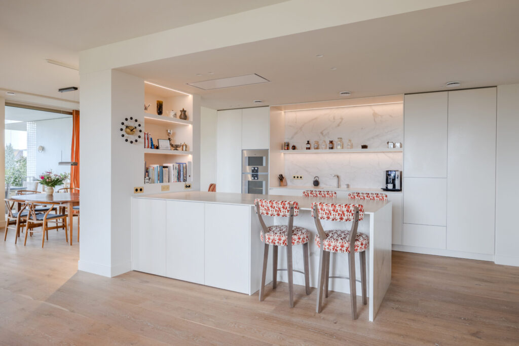 Een moderne keuken met eiland zorgt voor extra luxe. Het maakt uw keuken gelijk ruimtelijker. U heeft meer werkblad en er is genoeg plek voor een inductiekookplaat, spoelbak met kraan of extra kasten. Daarnaast vervaagt de grens met de woonkamer. Een moderne keuken met kookeiland nodigt uit om aan te schuiven. Gezellig een praatje te maken. Mee te helpen met koken. Voor een sfeervolle keuken!